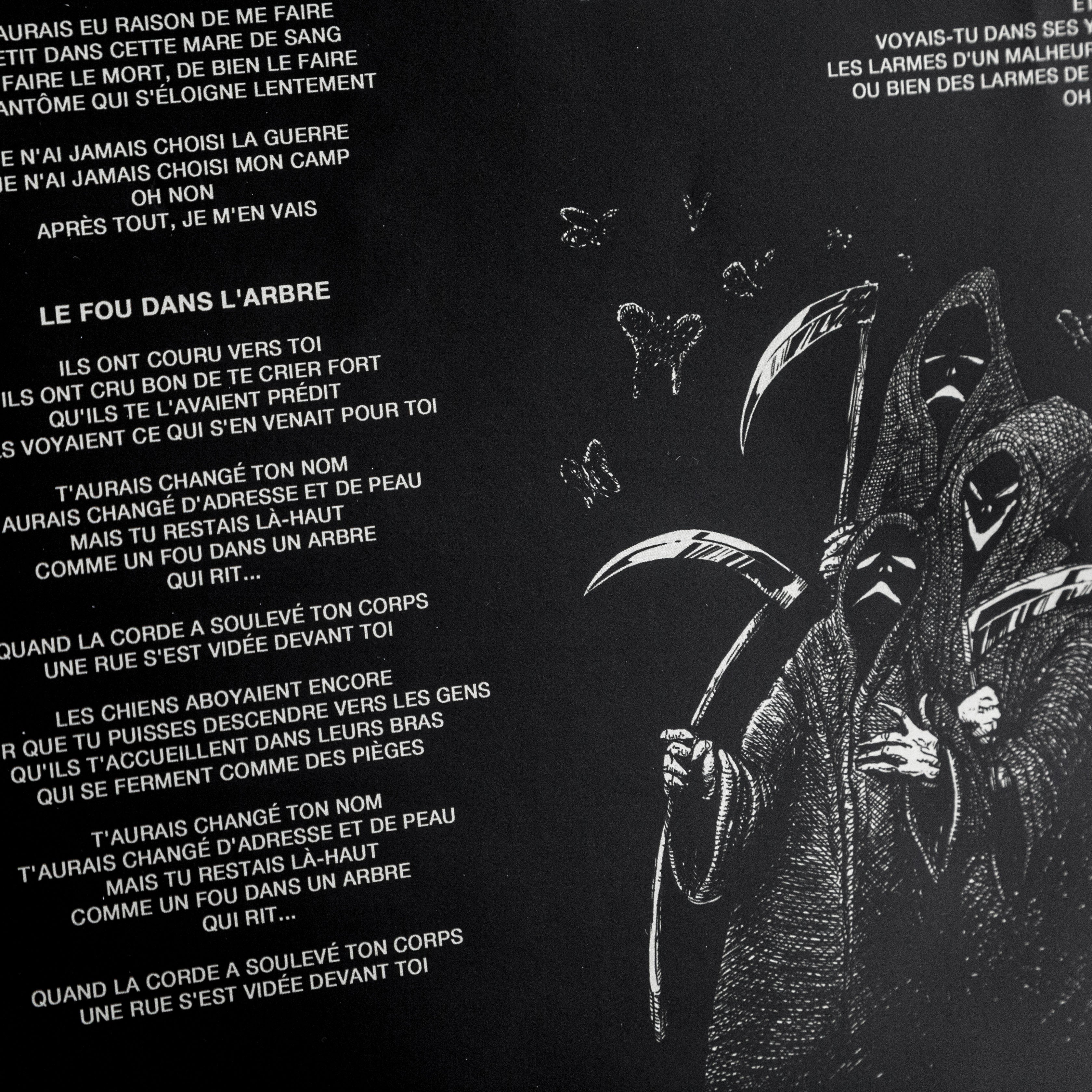 À la fois candide et sinistre, léger et brutal, ce nouvel album homonyme mise sur une saisissante dualité, annoncée d’emblée par la pochette - une illustration signée Personne sur laquelle deux enfants découvrent les résidus d’un cadavre. La table est mise pour l’ébruitement d’un monde mystérieux où s’entrecroisent esprits fantomatiques, présences étranges et personnages au destin brisé.