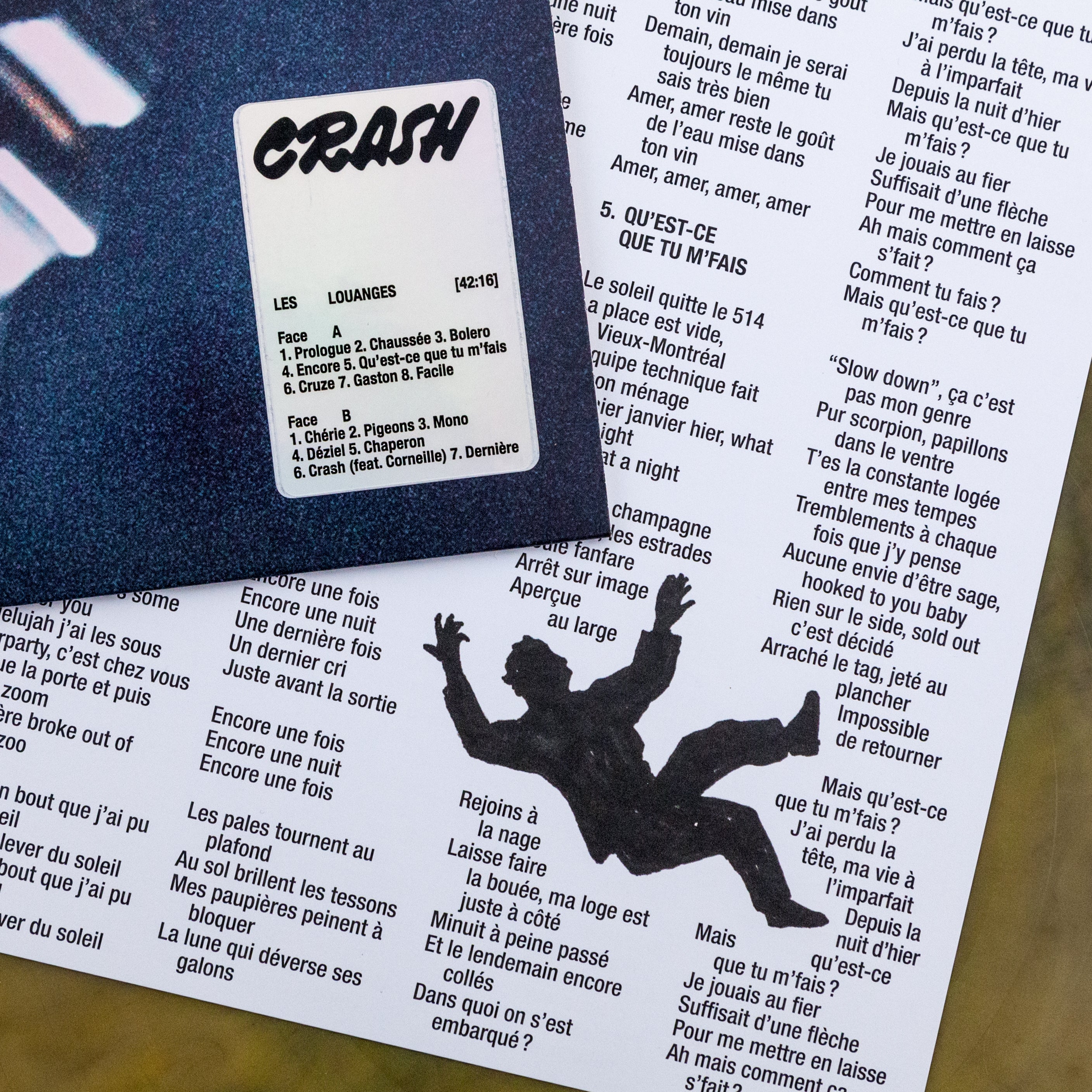 Lyrics by Vincent Roberge, except Qu’est-ce que tu m’fais co-written with Félix Petit and Crash co-written with Cornelius Nyungura and Sofia de Medeiros.